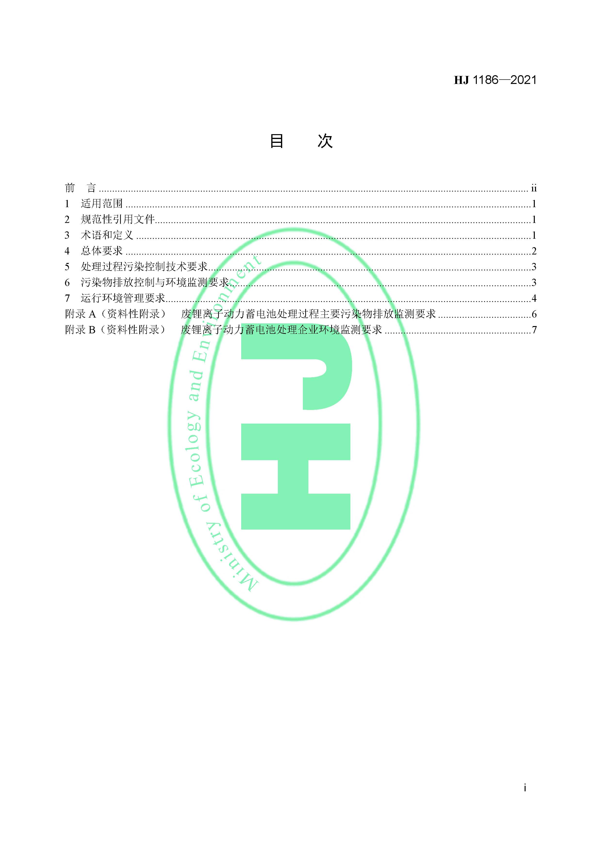 為貫徹《中華人民共和國環(huán)境保護(hù)法》《中華人民共和國固體廢物污染環(huán)境防治法》等法律法規(guī),防治污染,保護(hù)生態(tài)環(huán)境,規(guī)范和指導(dǎo)廢鋰離子動力蓄電池處理過程,制定本標(biāo)準(zhǔn)。本標(biāo)準(zhǔn)規(guī)定了廢鋰離子動力蓄電池處理過程的污染控制技術(shù)要求和運(yùn)行環(huán)境管理要求。本標(biāo)準(zhǔn)附錄 A 和附錄 B 為資料性附錄。本標(biāo)準(zhǔn)為首次發(fā)布。
