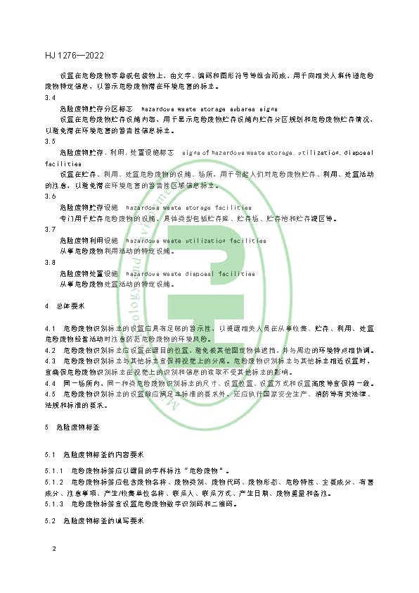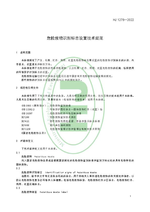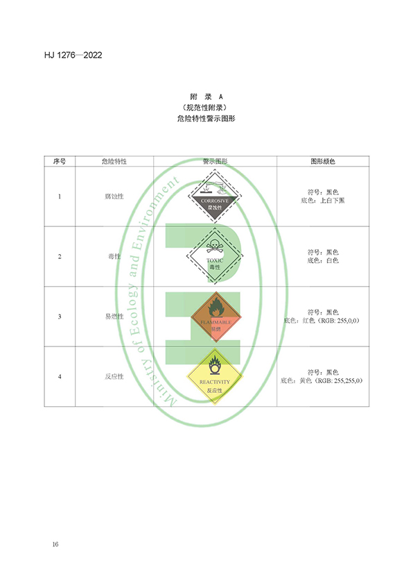 為貫徹《中華人民共和國環(huán)境保護法》《中華人民共和國固體廢物污染環(huán)境防治法》等法律法規(guī),防治環(huán)境污染,改善生態(tài)環(huán)境質(zhì)量,規(guī)范危險廢物識別標志設置,制定本標準。本標準規(guī)定了產(chǎn)生、收集、貯存、利用、處置危險廢物單位需設置的危險廢物識別標志的分類、內(nèi)容要求、設置要求和制作方法。本標準的附錄A 為規(guī)范性附錄,附錄B 為資料性附錄。本標準為首次發(fā)布。