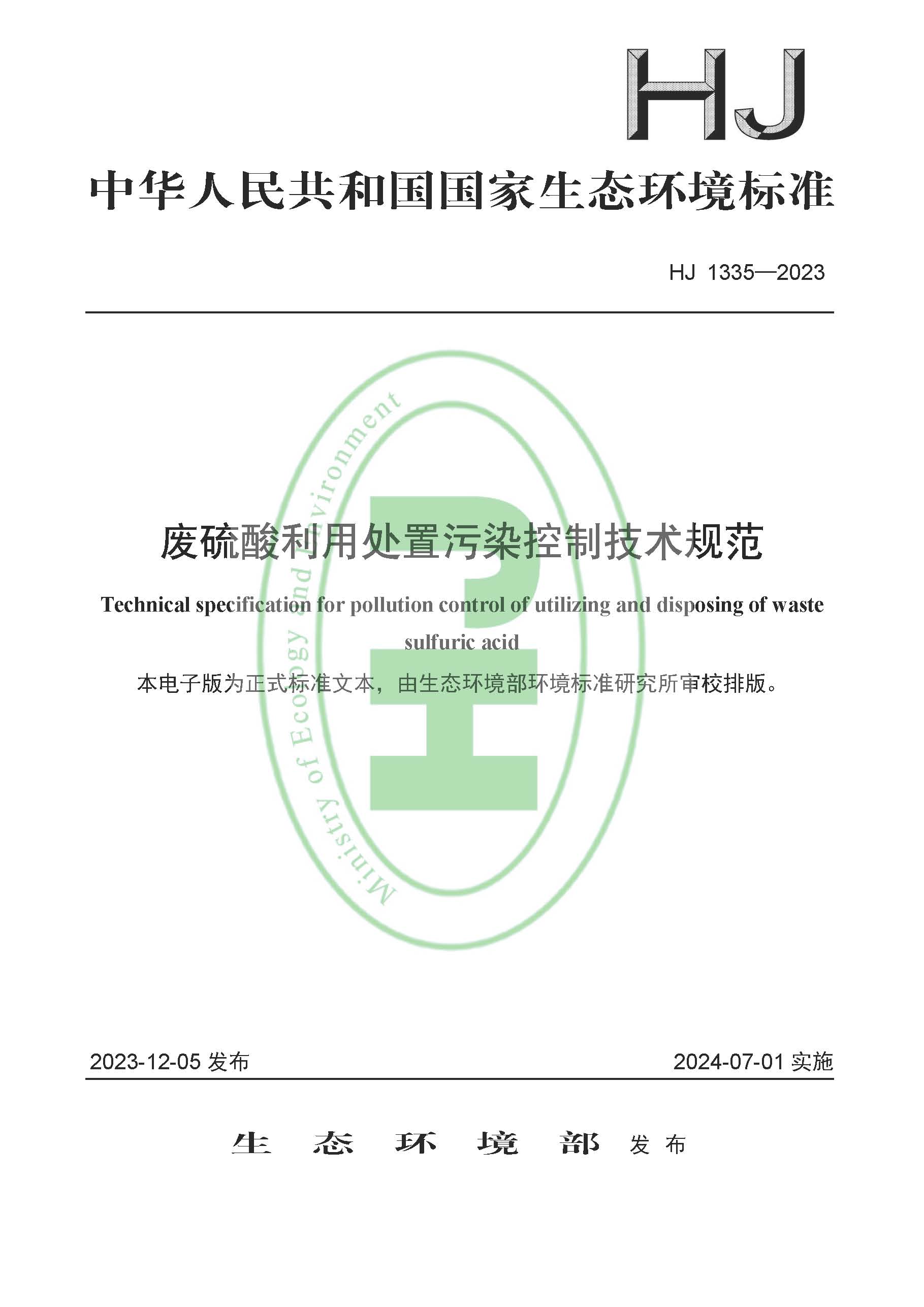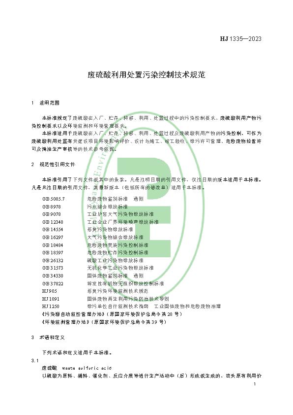 為貫徹《中華人民共和國環(huán)境保護(hù)法》《中華人民共和國固體廢物污染環(huán)境防治法》等法律法規(guī), 防治環(huán)境污染,改善生態(tài)環(huán)境質(zhì)量,規(guī)范和指導(dǎo)廢硫酸利用處置的環(huán)境管理,制定本標(biāo)準(zhǔn)。本標(biāo)準(zhǔn)規(guī)定了廢硫酸在入廠、貯存、轉(zhuǎn)移、利用、處置過程中的污染控制要求,廢硫酸利用產(chǎn)物污染控制要求以及環(huán)境監(jiān)測和環(huán)境管理要求。本標(biāo)準(zhǔn)為首次發(fā)布。