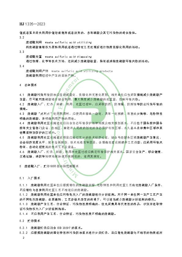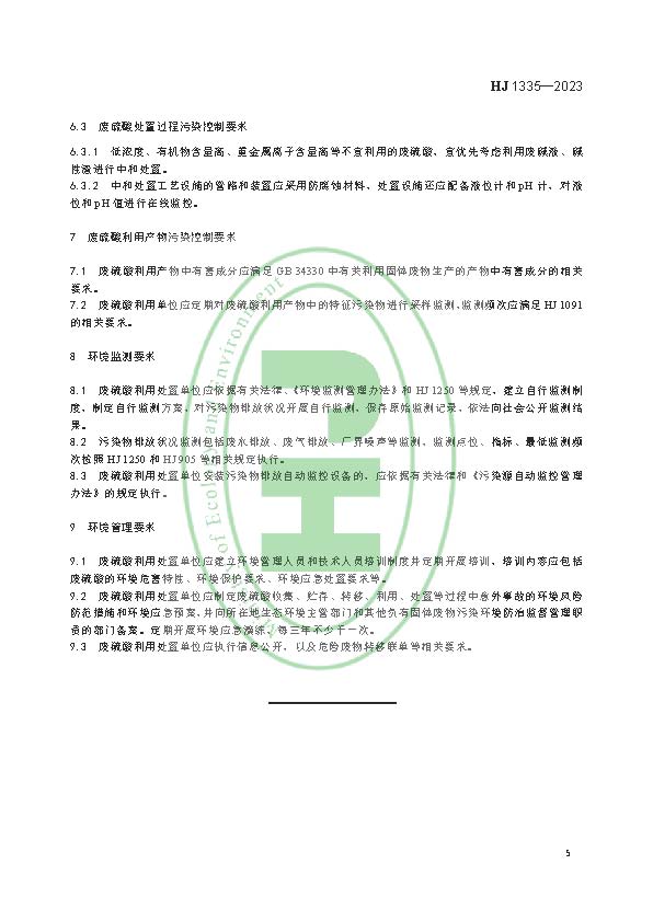 廢硫酸利用處置污染控制技術(shù)規(guī)范