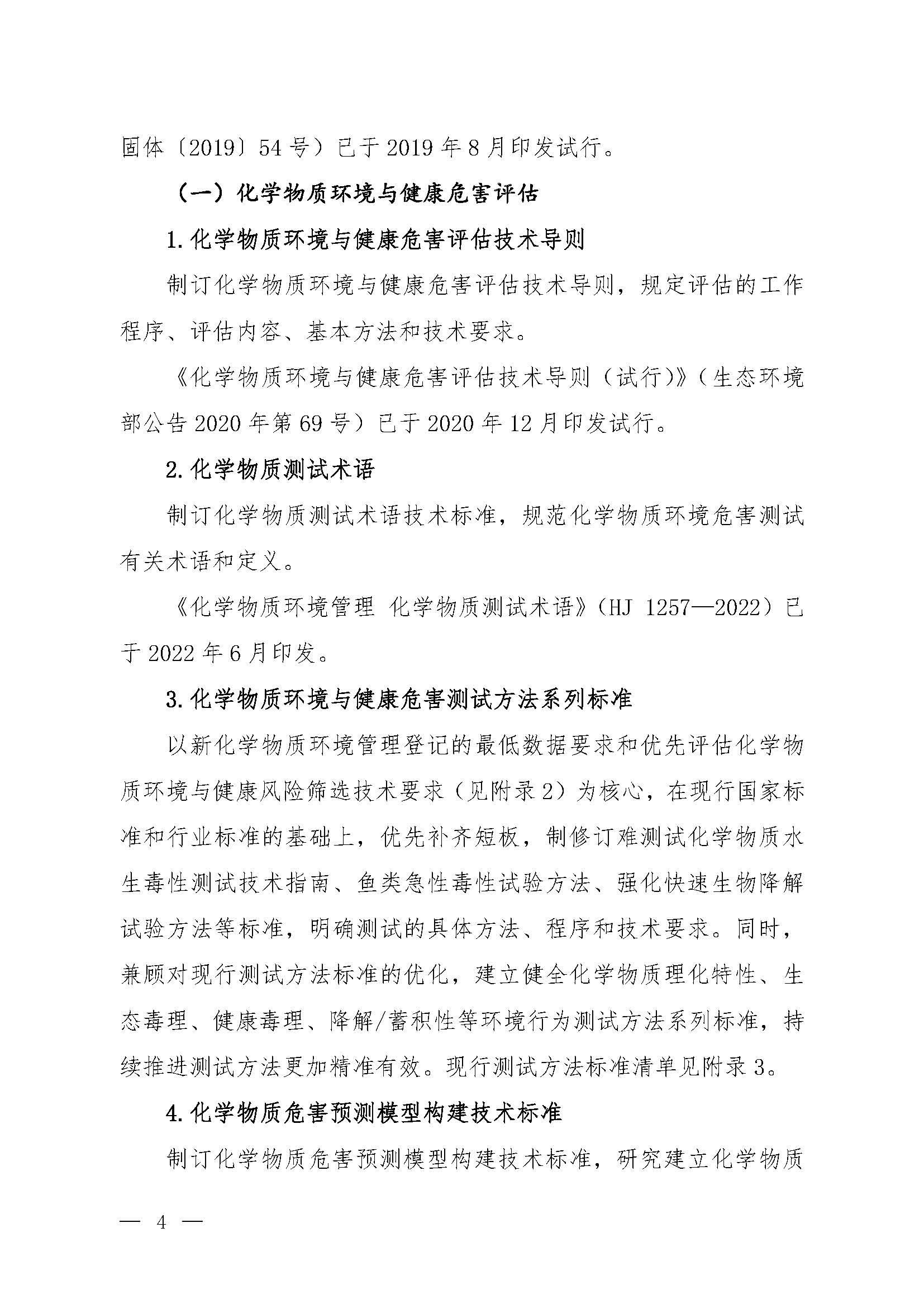為貫徹落實(shí)《新污染物治理行動(dòng)方案》(國(guó)辦發(fā)〔2022〕15號(hào))有關(guān)建立化學(xué)物質(zhì)環(huán)境風(fēng)險(xiǎn)評(píng)估與管控技術(shù)標(biāo)準(zhǔn)體系的要求,充分發(fā)揮技術(shù)標(biāo)準(zhǔn)的引導(dǎo)、推動(dòng)和規(guī)范作用,支撐精準(zhǔn)治污、科學(xué)治污、依法治污,我部組織編制了《化學(xué)物質(zhì)環(huán)境風(fēng)險(xiǎn)評(píng)估與管控技術(shù)標(biāo)準(zhǔn)體系框架(2024年版)》?,F(xiàn)印發(fā)給你們,供開(kāi)展化學(xué)物質(zhì)環(huán)境風(fēng)險(xiǎn)評(píng)估與管控等工作參考??赊D(zhuǎn)發(fā)給有關(guān)技術(shù)單位,開(kāi)展標(biāo)準(zhǔn)制修訂預(yù)研究工作。
