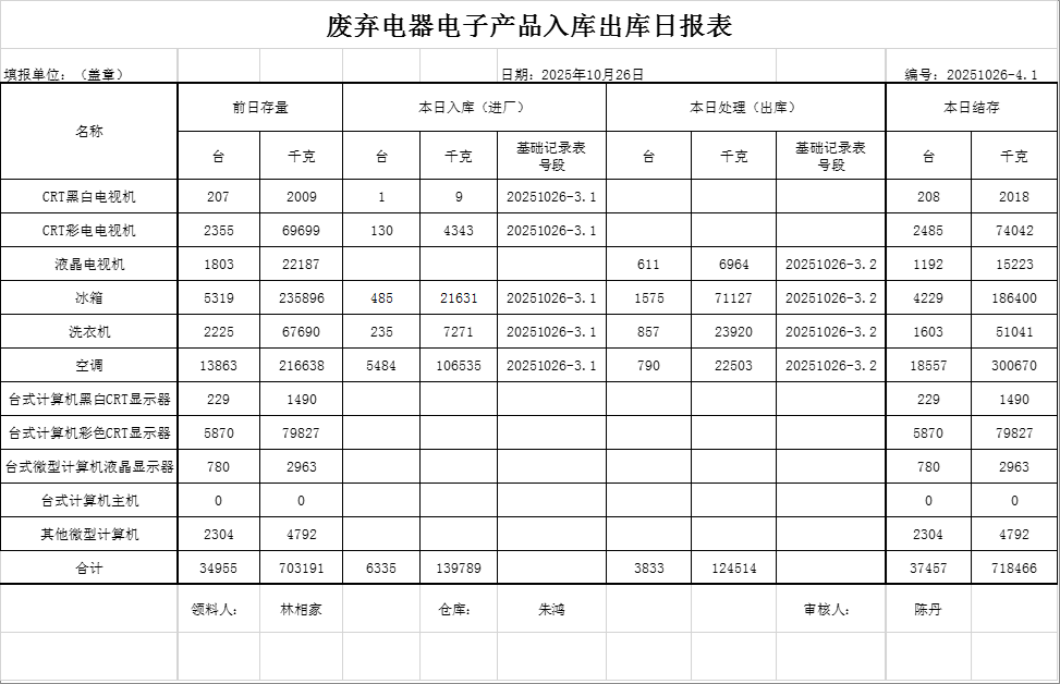 2025.10.26回收拆解統(tǒng)計(jì)表