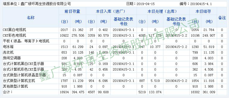 2019.04.15 回收拆解統(tǒng)計(jì)表
