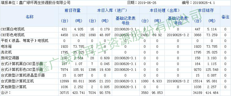 2019.06.26回收拆解統(tǒng)計(jì)表