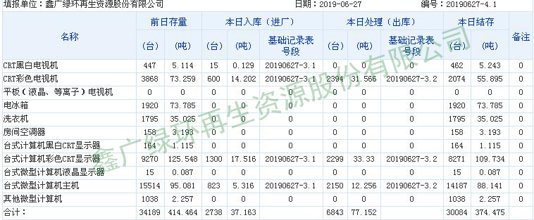 2019.06.30回收拆解統(tǒng)計表