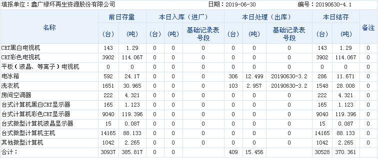 2019.06.30回收拆解統(tǒng)計(jì)表