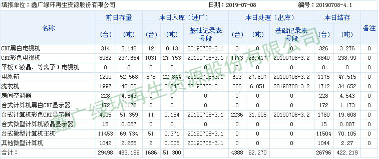 2019.07.08回收拆解統(tǒng)計(jì)表