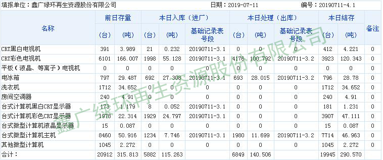 2019.07.11回收拆解統(tǒng)計表