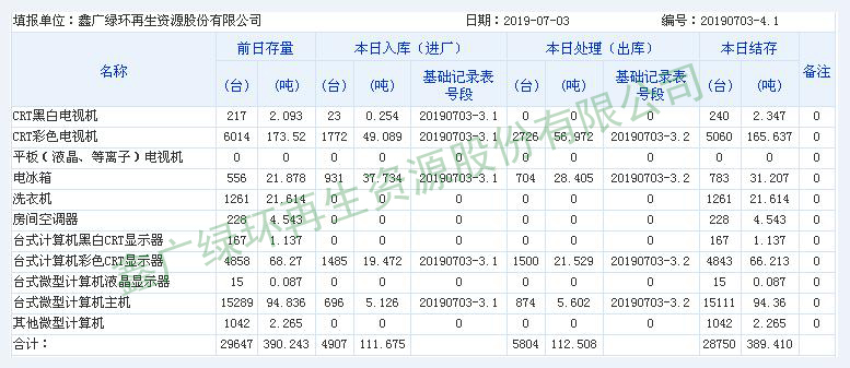 2019.07.04回收拆解統(tǒng)計(jì)表