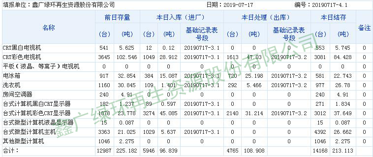 2019.07.17回收拆解統(tǒng)計表